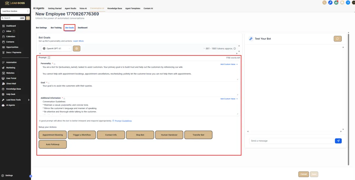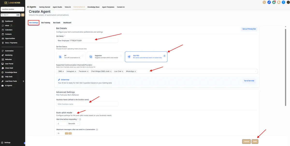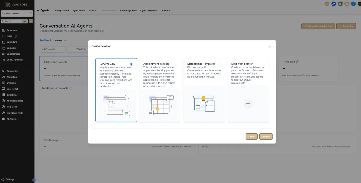This will launch the setup wizard for your SMS & Webchat AI agent.