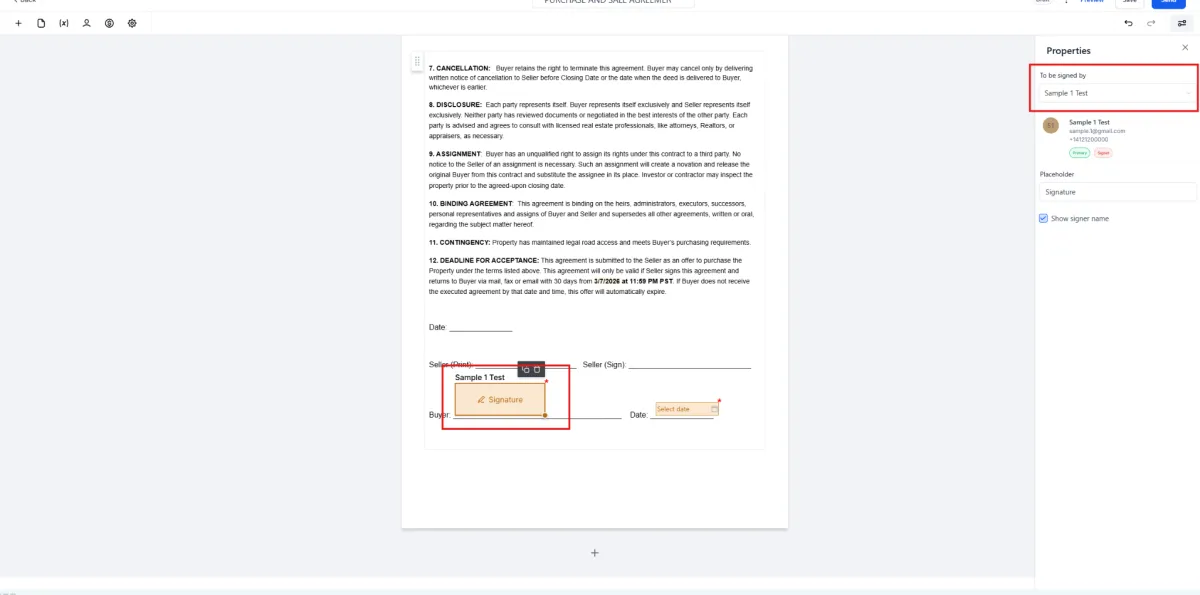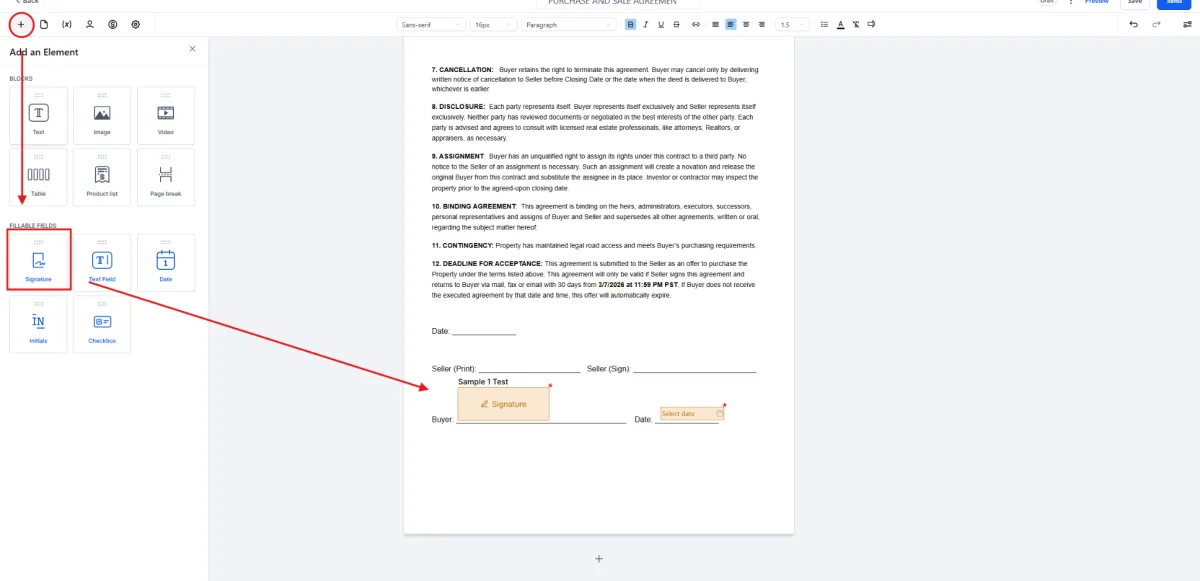 2️⃣ Place the signature field in the location where the recipient should sign.