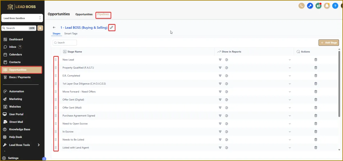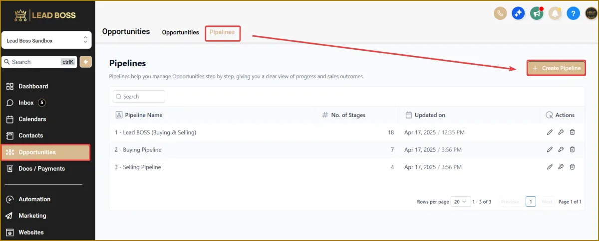 Pipelines in Lead Boss CRM help you manage, track, and automate your lead and client workflows in one place. They visually organize leads and customers into stages that match your business process, from first contact to conversion or completion.