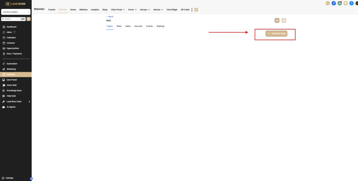 Click + Add New Page (top right).