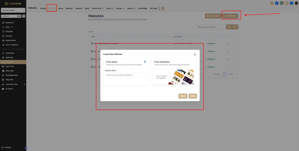 2️⃣ Create a New Website