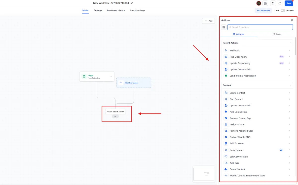 “When form is submitted, add a tag, send SMS immediately, wait 10 minutes, then send email.”