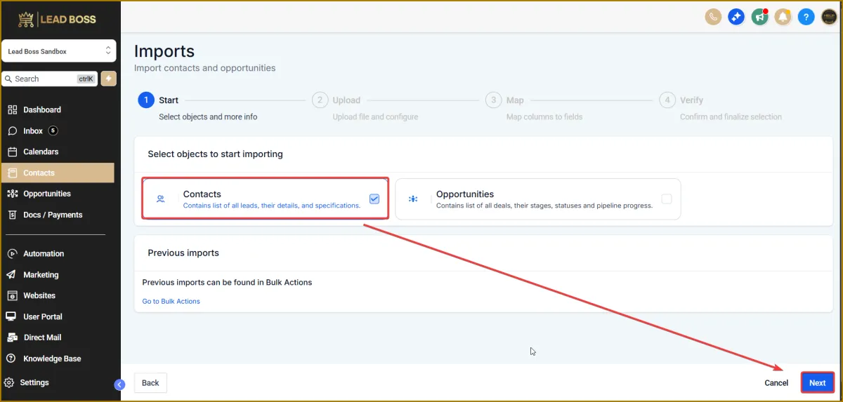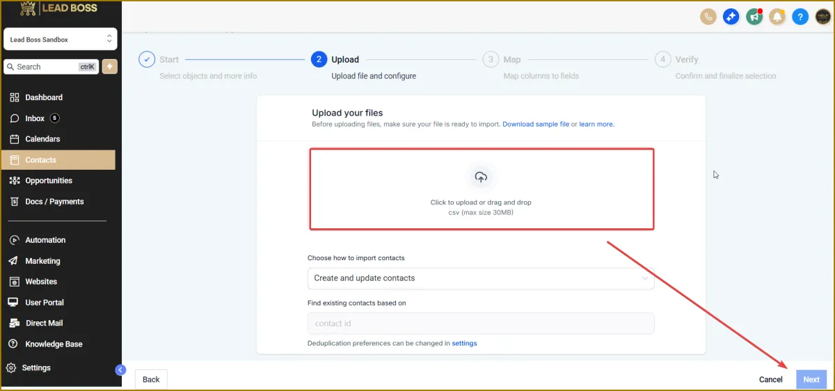 2️⃣ Once uploaded, click Next to proceed to the field-mapping step.
