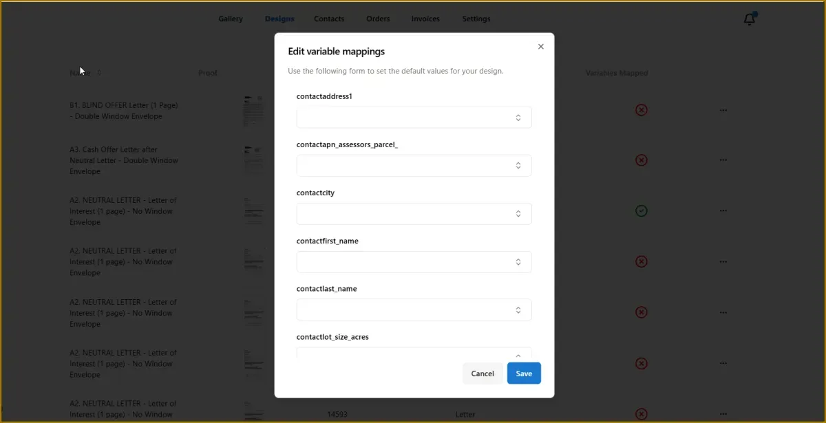 Your direct mail template will now automatically populate recipient information when sending letters, allowing you to personalize mail for each contact without manual editing.