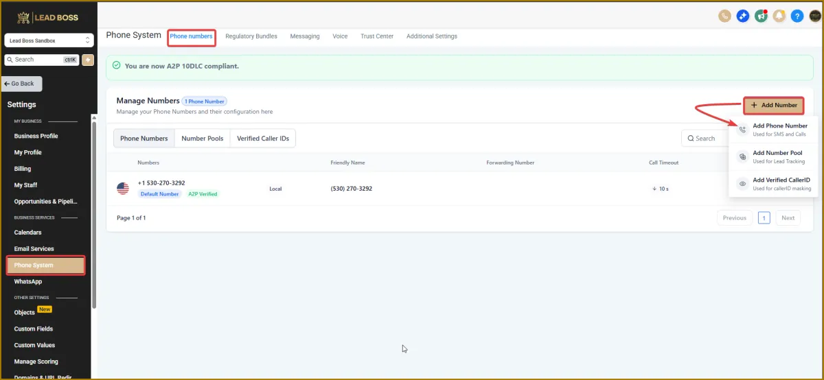 Note: There’s nothing more you need to do after this stage. The LeadBoss tech team will submit the A2P registration on your behalf.